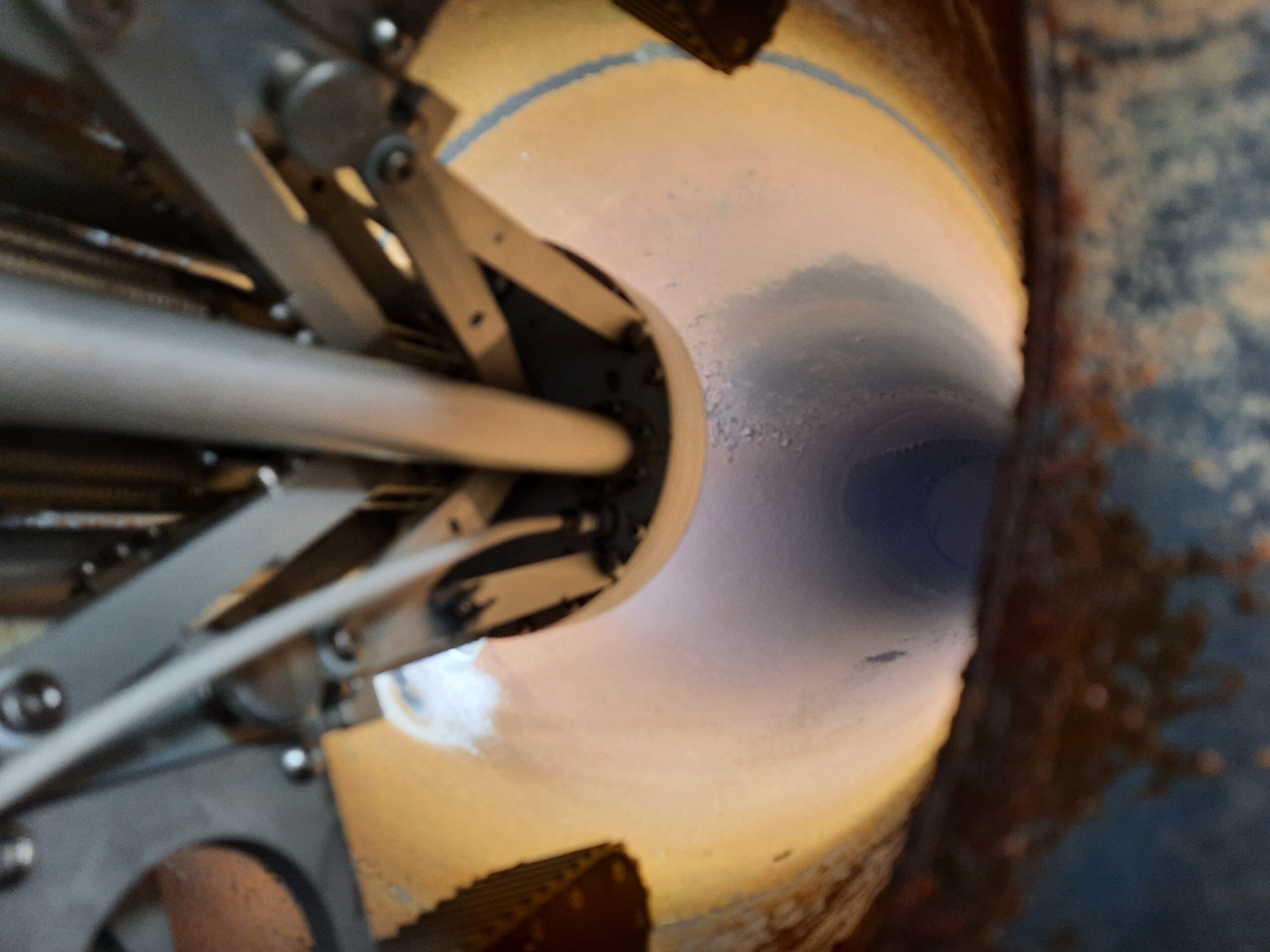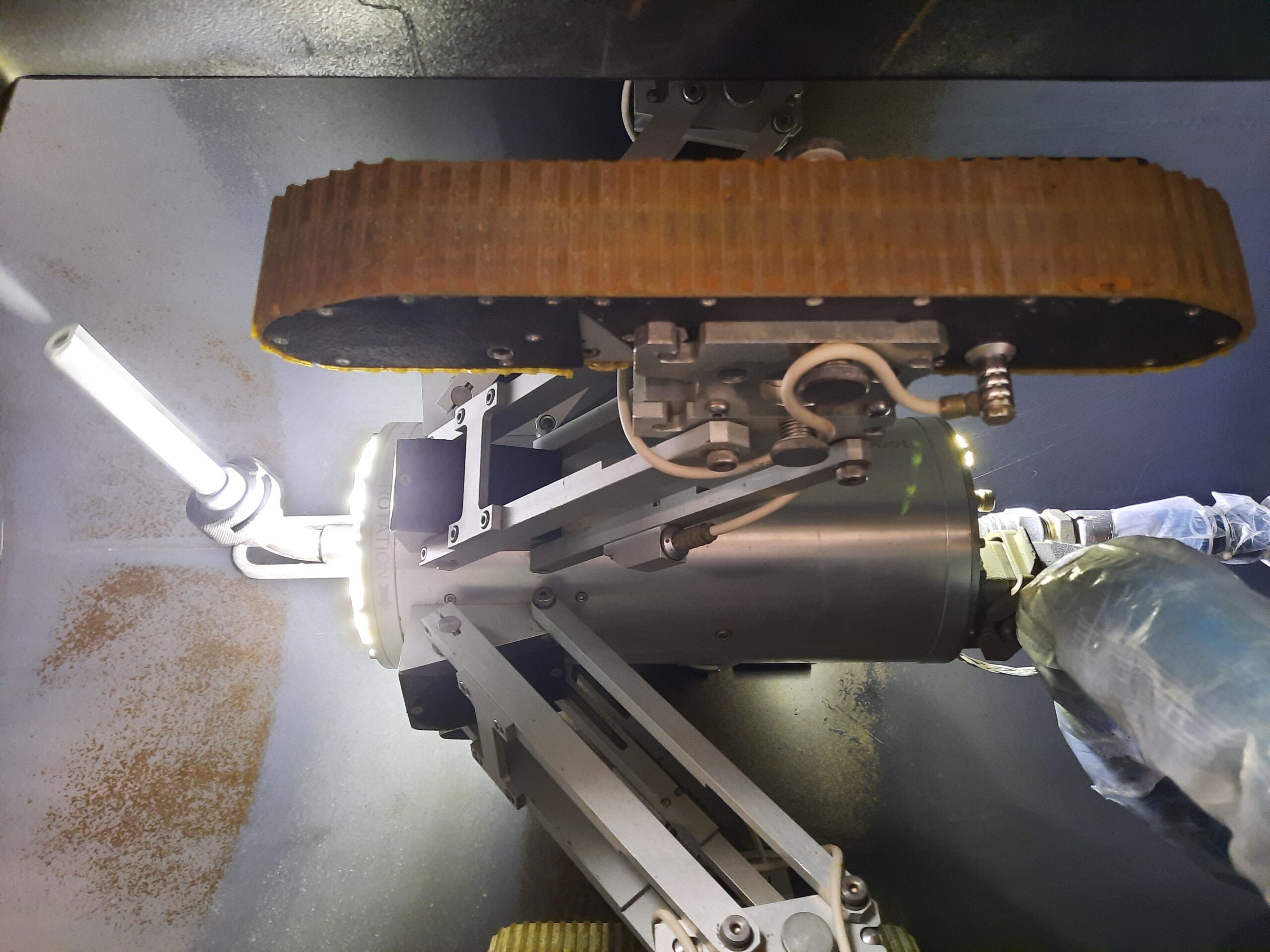 Two design features worthy of specific mention are the robots’ stability in service and their suitability for all duct shapes. The robot is centred in and “propped” (pneumatically locked) against the side of the duct, generating sufficient stability to even allow for the use of intensive or high pressure cleaning methods. Its multi-tracked body allows it to expand (under pneumatic pressure) to the required size of the duct and easily pass through, inspect, and clean circular, rectangular or square-shaped ducts in both horizontal and vertical planes; they can also handle slopes, as well as negotiate S-shaped ducting and various turns.