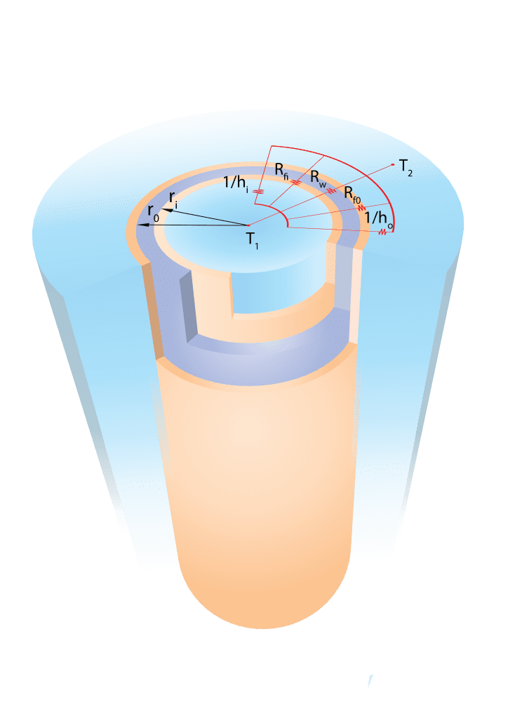 However, for this analysis, it will be presented in a more intuitive way for the reader. In particular, an analogy exists between thermal and electric flow. Just as an electrical resistance is associated with the conduction of electricity, a thermal resistance, 1/U, may be associated with the resistance to heat flux. A difference in voltage can be compared to a difference in temperature. Therefore, 1/U can be expressed as the sum of the individual resistances in a tube [³]: