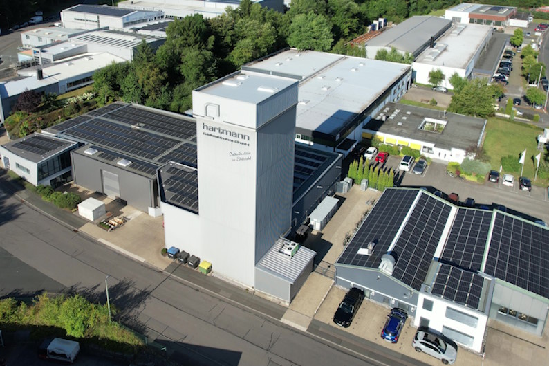 The last three years have marked a period of impactful developments at Hartmann. This progress is rooted in a clear corporate philosophy that focuses on sustainability, independence and forward thinking. Implementation began in early 2022 with the full conversion of the company’s lighting to LED systems. In October 2022, the company replaced its fleet with electric and hybrid vehicles and installed its own charging infrastructure, powered by an in-house photovoltaic system. By the end of 2023, their nitrogen production plant was operational. In 2024, the first expansion stage of the photovoltaic system was completed, and in 2025, with the installation of an electrolysis system for hydrogen production, Hartmann completed the final step in its roadmap toward decarbonizing its energy consumption. Expanding solar energy is a key pillar of the company’s strategy. The aim is to ensure the company’s energy independence with the help of the most efficient and sustainable technologies possible. Since 2023, Hartmann has been producing solar power with a peak output of 420 kW on around 3,000 square metres of hall roof space. A battery storage system has also been installed to compensate for fluctuations in electricity availability.