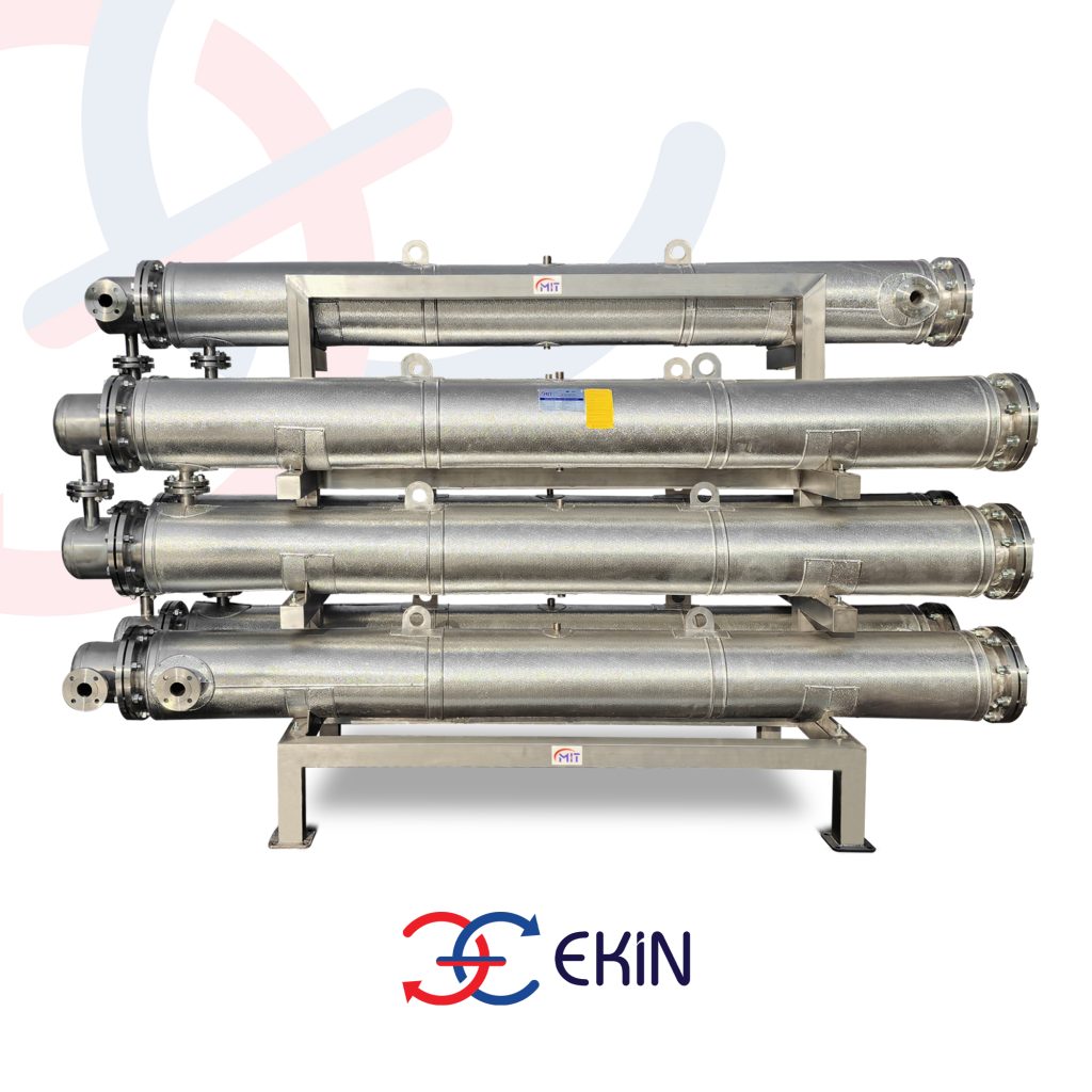 In the third and final stage, the water heated by the first two stages passes through a single heat exchanger constructed entirely in stainless steel. A custom-designed MIT Tubular Series heat exchanger heats both hard water and soft water while keeping them separated. The exchanger measures DN200*2950 mm and is type BEM (TEMA). The construction material was AISI 316 (EN-10216) for the tubes and AISI 304 (EN-10217) for the shell.